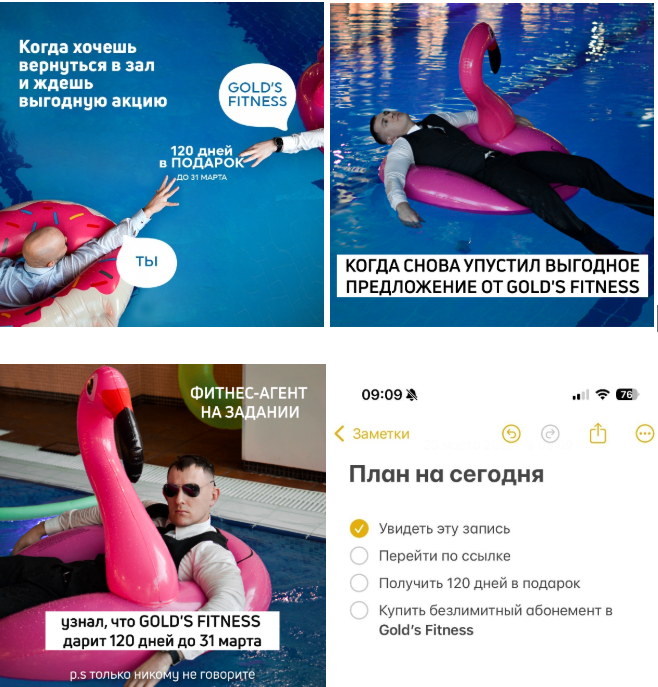 В феврале мы запустили оффер «120 дней в подарок при покупке абонемента на 6, 9 или 12 месяцев». Реклама работала на аудитории: