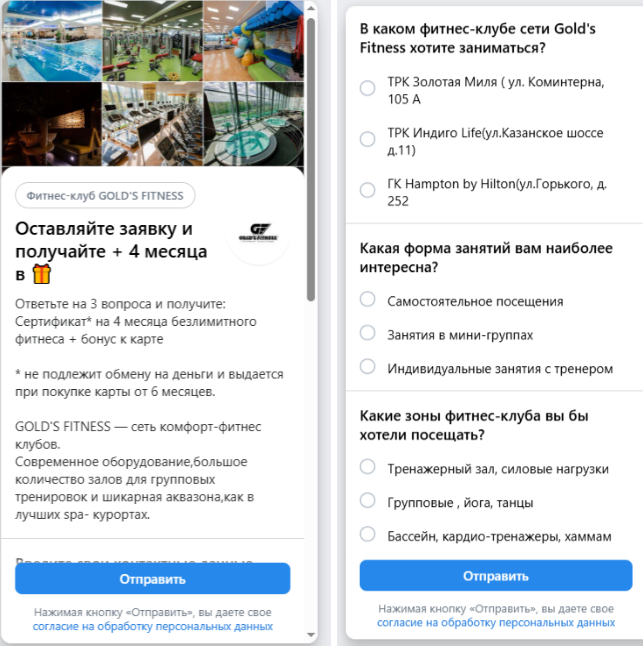 Обновили лид-форму: добавили три вопроса: о локации, формате тренировок и зонах фитнес клуба, интересных потенциальным клиентам.