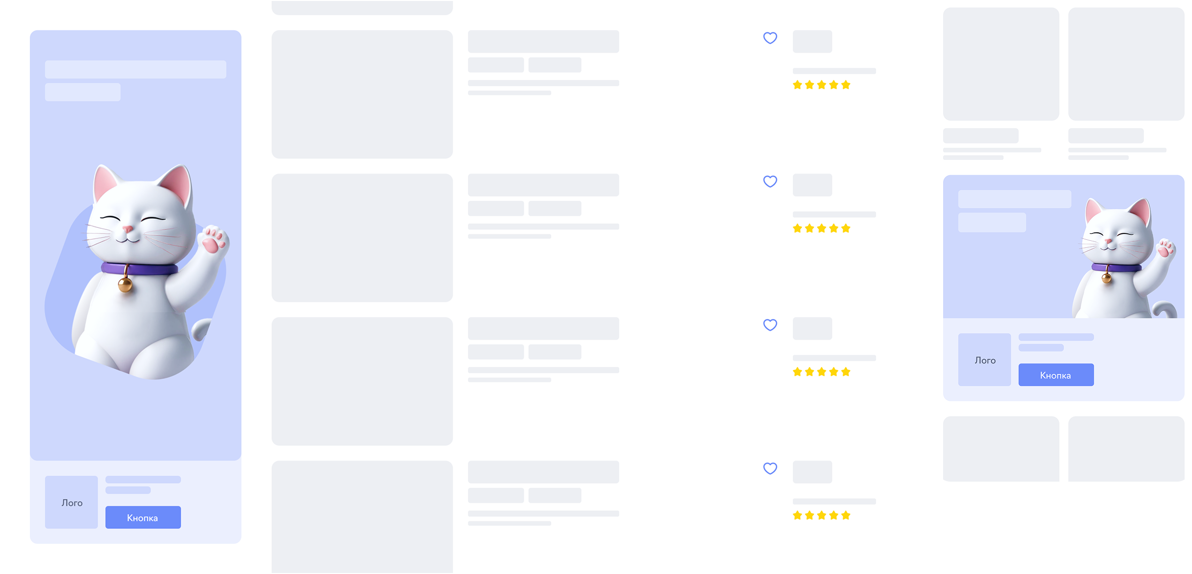 Кастомные решения под конкретные задачи. Бывают игровыми или категорийными. Это формат для креативных концепций и нестандартных интеграций.
