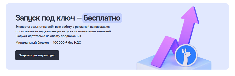 Главное преимущество снижения порога входа — не только в экономии денег. Настройку, запуск и оптимизацию рекламных кампаний бесплатно берет на себя eLama. Это экономит рекламодателям время на изучении новой системы, форматов и метрик и дает возможность получить желаемый результат. А еще при запуске через eLama можно вернуть до 15% рекламного бюджета бонусами на счет — приятный аргумент в пользу теста.