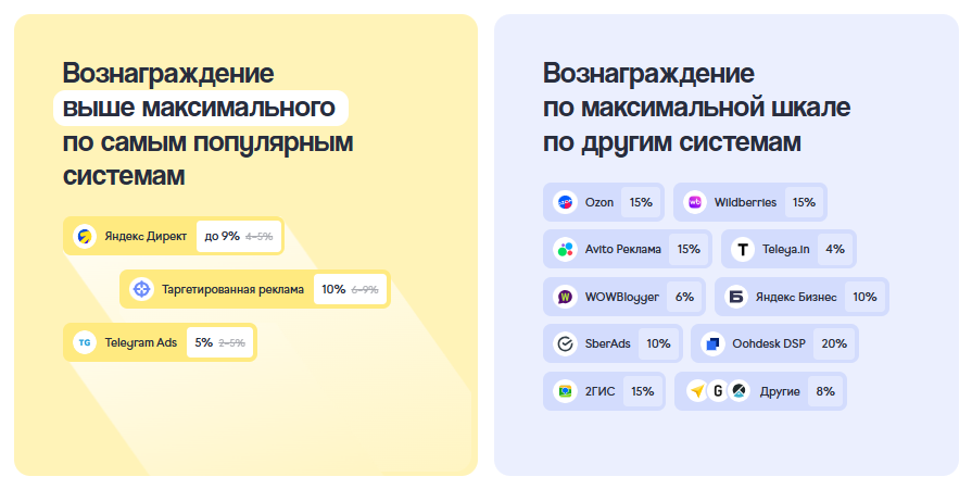 гибкие условия постоплаты, что помогает более эффективно планировать и инвестировать рекламный бюджет