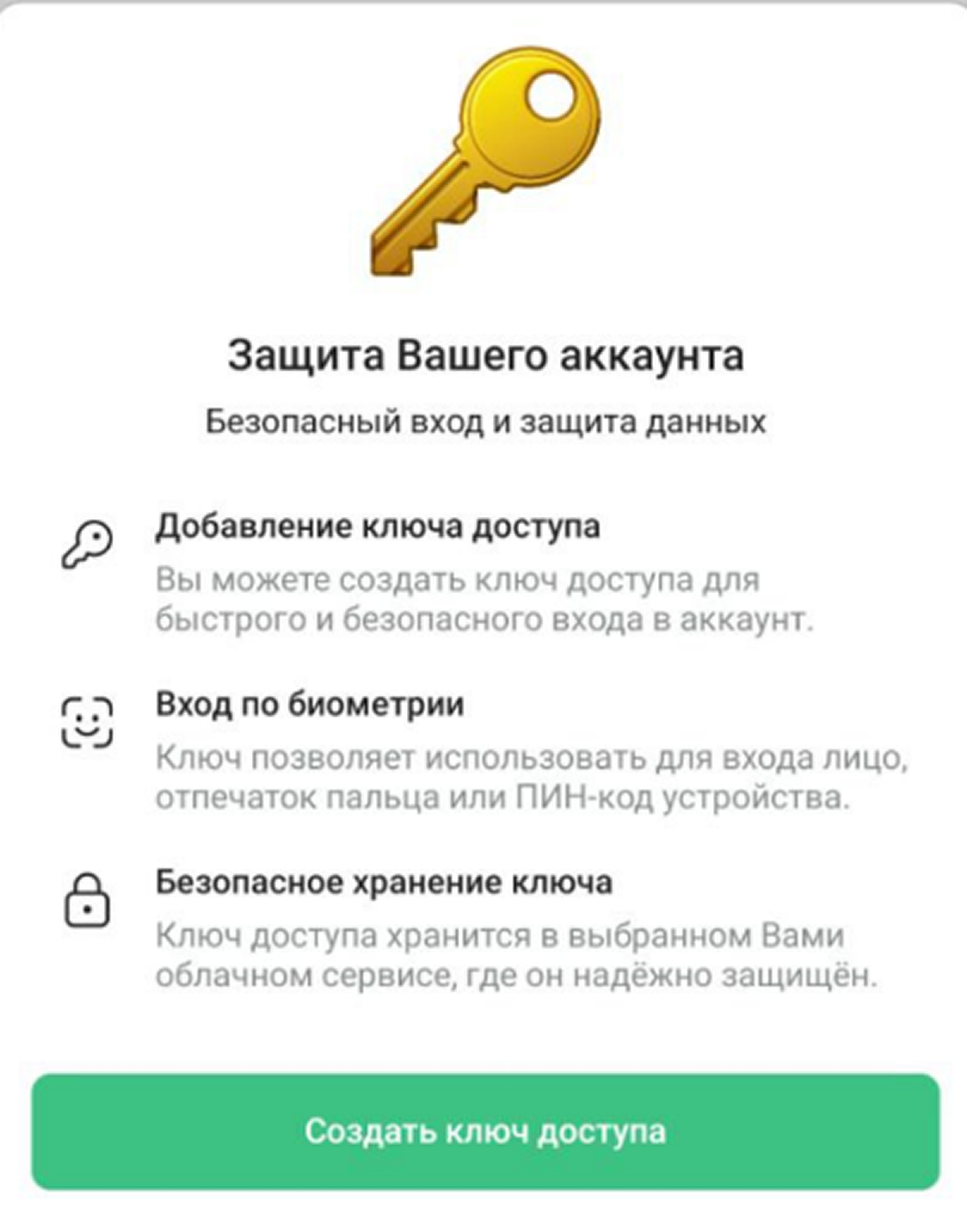 Passkey — это альтернатива входу через другое устройство или по email. Он сохраняется в общей базе паролей и передается через устройства (например, если вы решили обновить iPhone, Passkey синхронизируется с новым устройством, вы быстро войдете в аккаунт).