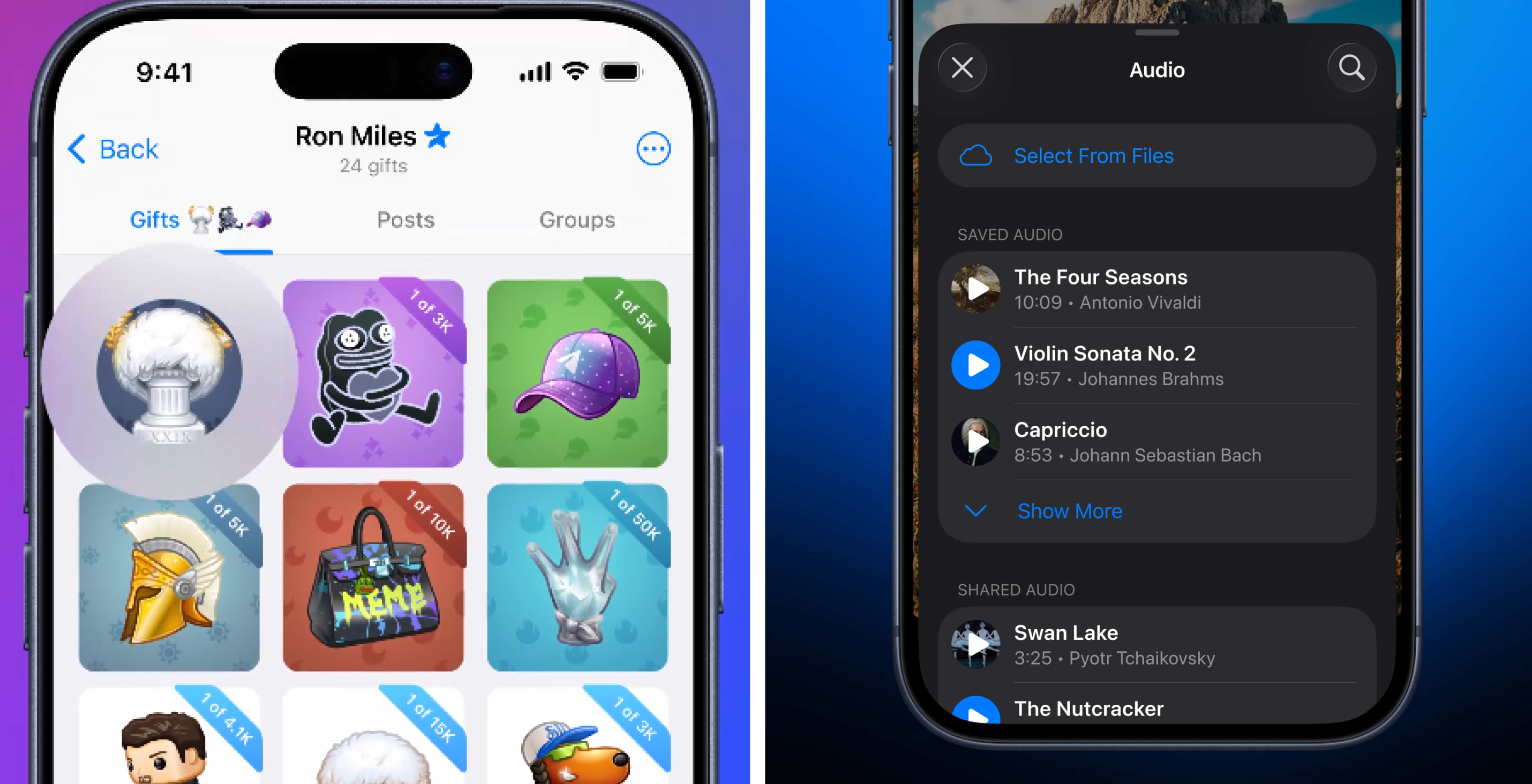 Назначение цены подарков Telegram + аудиозаписи в историях