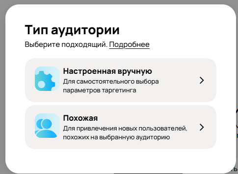 Чтобы показывать рекламу готовой аудитории, перейдите в раздел «Аудитории» кабинета и выберите: