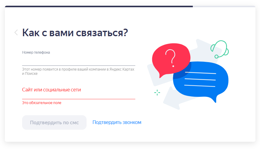 На последних этапах телефон для связи и сайт или соцсети, при желании добавляем фото офиса и отправляем заявку на проверку — обычно она занимает не более двух дней.
