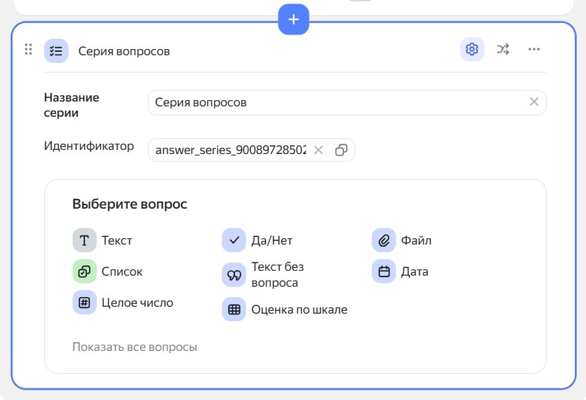 Обратите внимание. Если нужно собрать данные по нескольким однотипным объектам (например, список страниц для разработки), можно использовать серию вопросов.