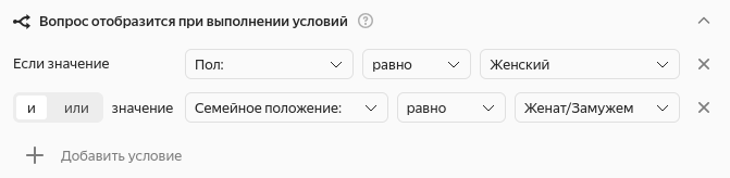 Теперь пользователь увидит только тот блок, который соответствует его ответу. Форма стала короче и релевантнее.