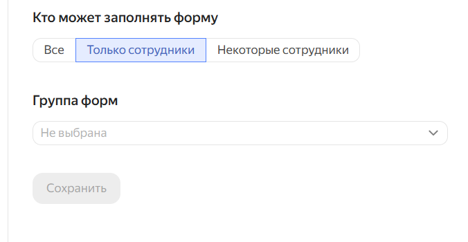 Для бизнес-версии Яндекс Форм доступны дополнительные настройки: можно разрешить заполнение формы только сотрудникам организации или даже ограничить конкретными людьми . Это удобно для внутренних опросов и корпоративных заявок.
