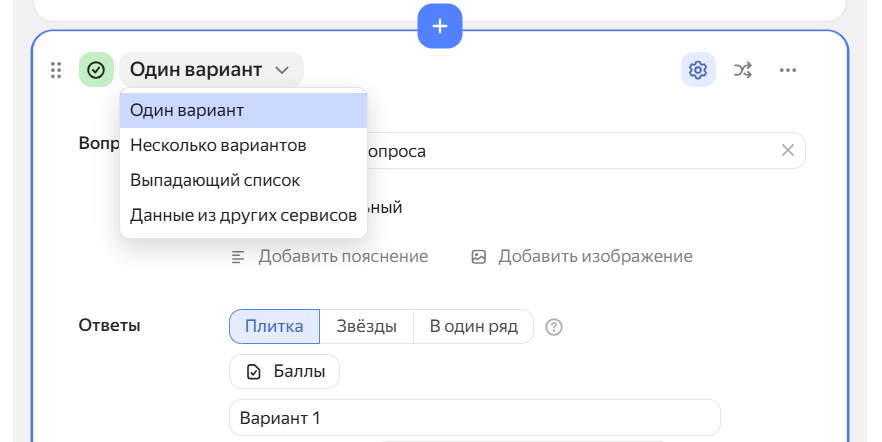 настроить варианты ответов (для закрытых вопросов);
