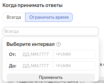 Чтобы принимать заявки только до определенного дня или часа, нужно кликнуть на «Ограничить время» и выбрать нужный интервал: