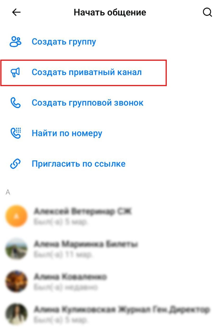 Выберите «Создать приватный канал». Эта функция доступна в версии приложения 26.3 и выше; если у вас более старая — обновите приложение на официальном сайте Max.