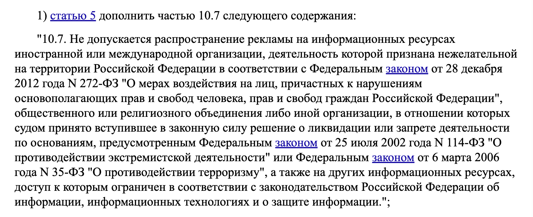 Реклама организаций, признанных нежелательными на территории РФ, также окажется под запретом.