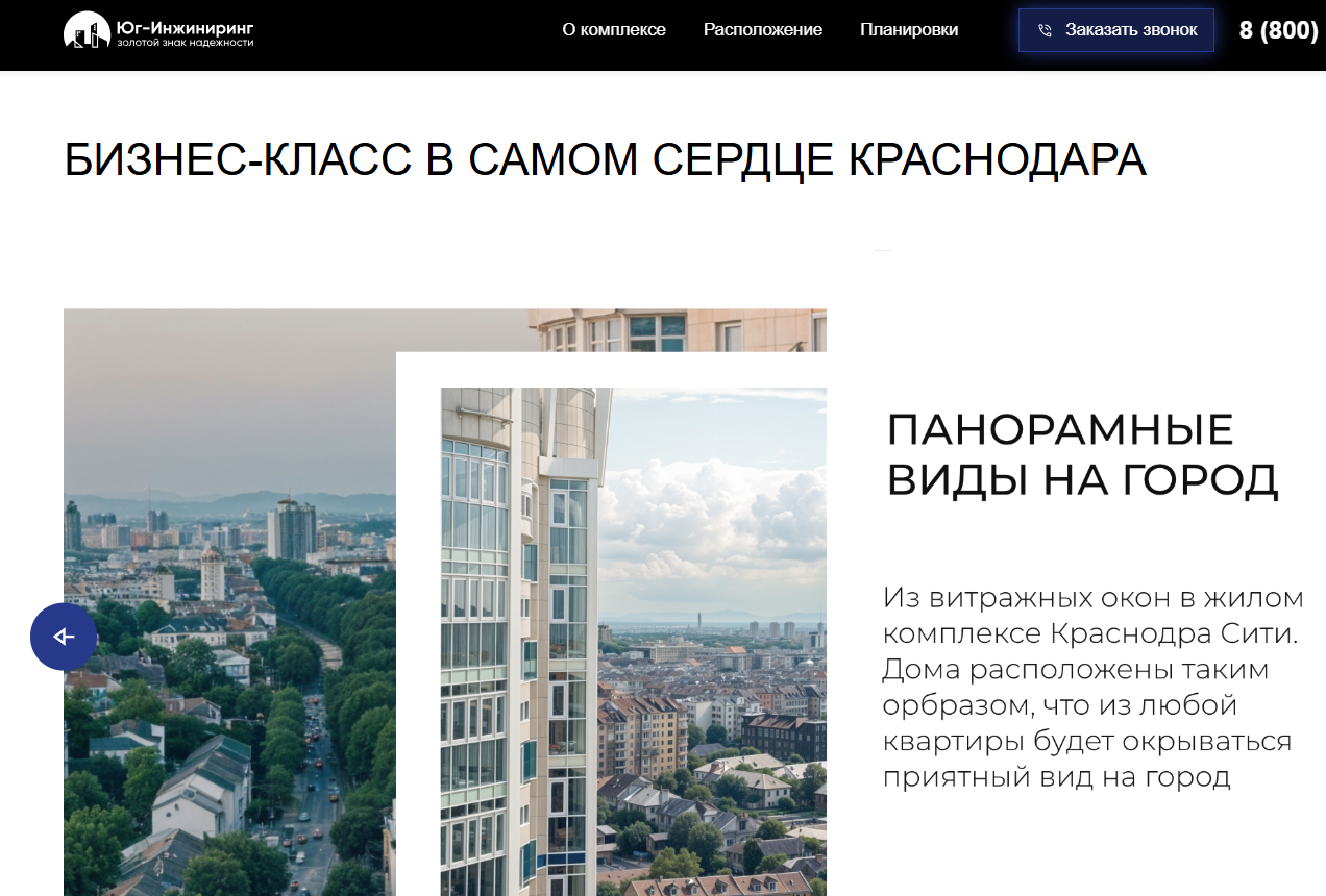 Клиент: строительная компания «Юг-Инжиниринг», на рынке недвижимости Краснодарского края с 2011 года. За время работы успешно сдала и ввела в эксплуатацию многоквартирные дома в разных городах региона, благодаря чему более 1200 семей получило новое жилье.