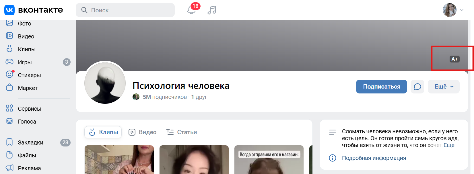 После регистрации некоторые социальные сети самостоятельно маркируют проверенные профили знаком А+ и добавляют в описание ссылку с сообщением о регистрации — например, ВКонтакте. Данные для маркировки площадке предоставляет сам Роскомнадзор.