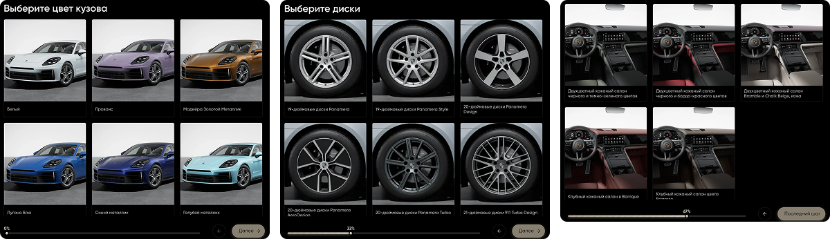 Настроили вовлекающий экспресс-конфигуратор: пользователь выбирает цвет кузова, салона, диски — и получает предложение.