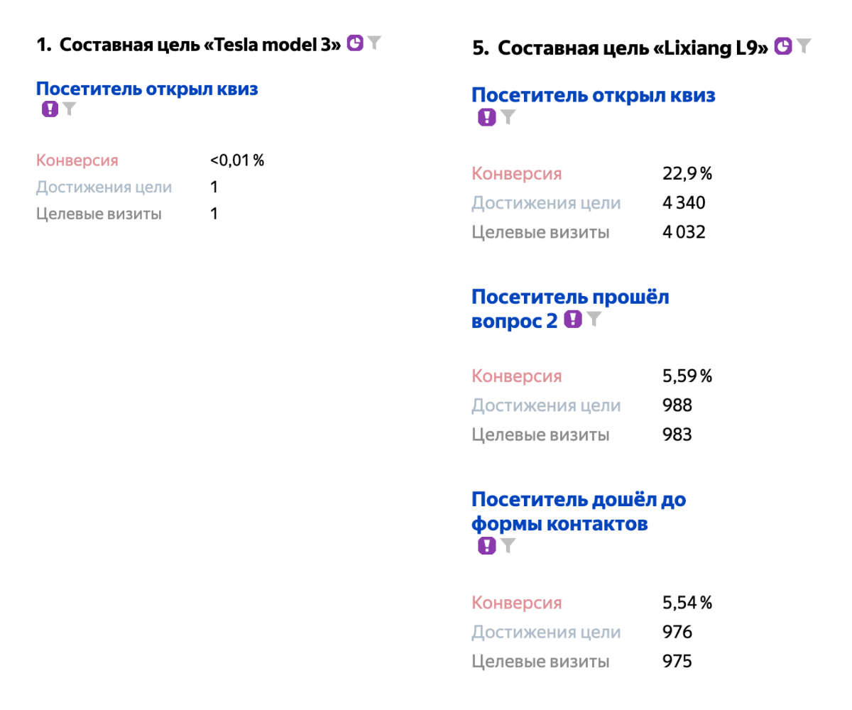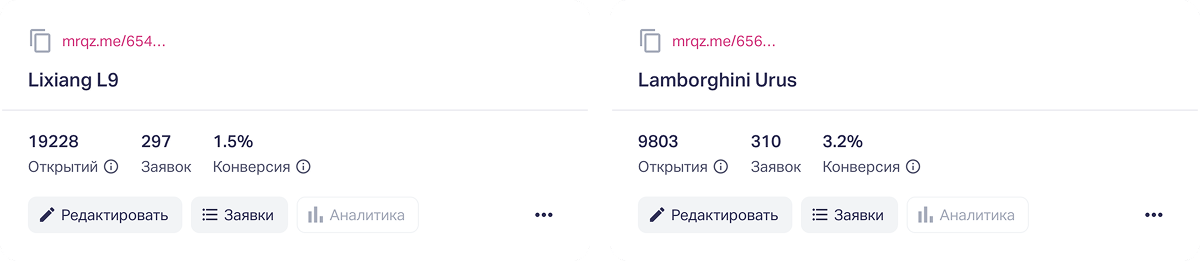 Сделать отдельные лендинги под каждый автомобиль — следующая точка роста. Квизы дают много лидов, а лендинги по нашей гипотезе смогут утеплить аудиторию за счет подробностей: на них мы дадим больше социального доказательства, расскажем про процесс доставки автомобиля и так далее. Тем самым лендинги помогут разгрузить менеджеров и дать им более горячие заявки.