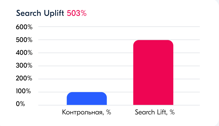 - Search Lift — оценка прироста брендовых запросов в тестовой группе (кто видел баннер) относительно контрольной (кто его не видел).
