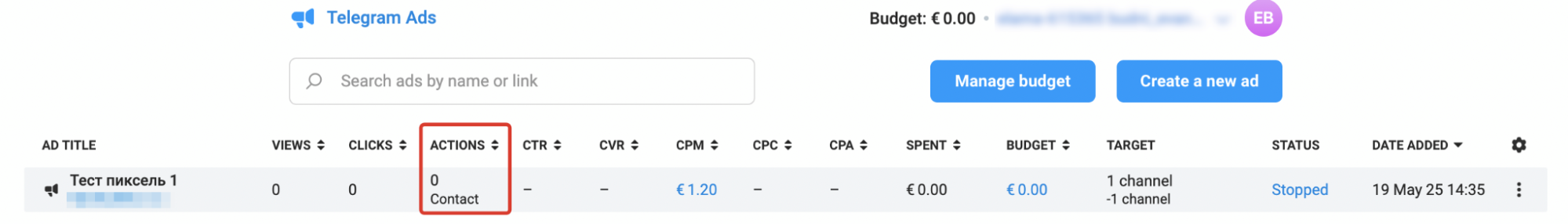 После установки пикселя и настройки событий в статистике вы будете видеть количество целевых действий по каждому объявлению и их стоимость.
