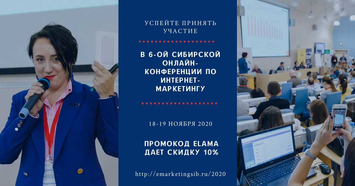 18-19 ноября 2020 года в Новосибирске уже в шестой раз состоится Сибирская конференция «Эффективный интернет-маркетинг: как получить результат» — eMarketingSib-2020. Организаторами мероприятия выступают Obuv Rossii Conference и e-commerce клуб «Сибирь».