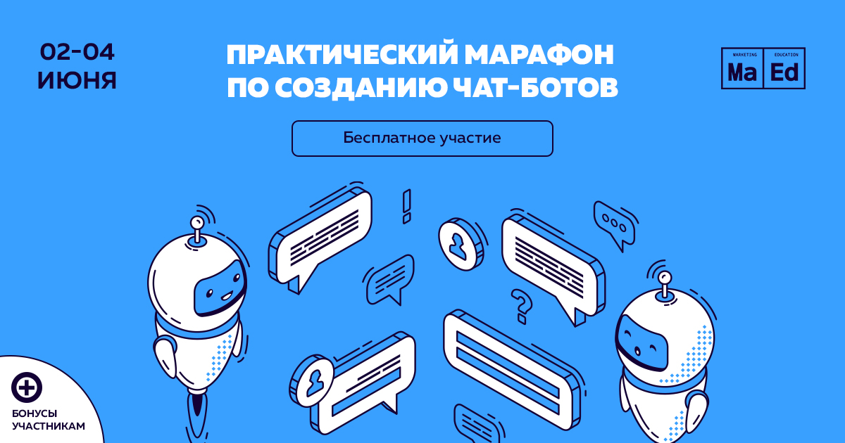 Займитесь стратегическими задачами, а рутину оставьте своему личному секретарю, который работает 24/7. Он не берет больничный, не ошибается, не забывает, выполняет все задания точно и в срок. Кто этот идеал? Знакомьтесь — чат-бот, ваш помощник в бизнесе. Это программа, которая работает в мессенджере по заданному алгоритму в виде текстовых сообщений или кнопок (меню). Всё, что выхотели знать о чат-ботах, но боялись спросить, можно будет узнать на 3-дневном онлайн-марафоне от учебного центра Maed с 2 по 4 июня!